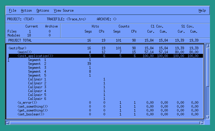 Xcover displays both call pair (S1) and branch coverage (C1)