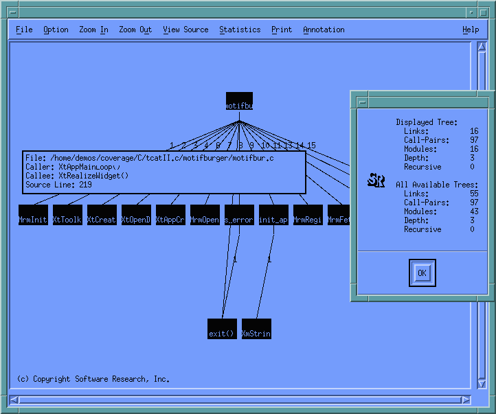This screen shows METRIC applied to the motifburger.c file...the source file