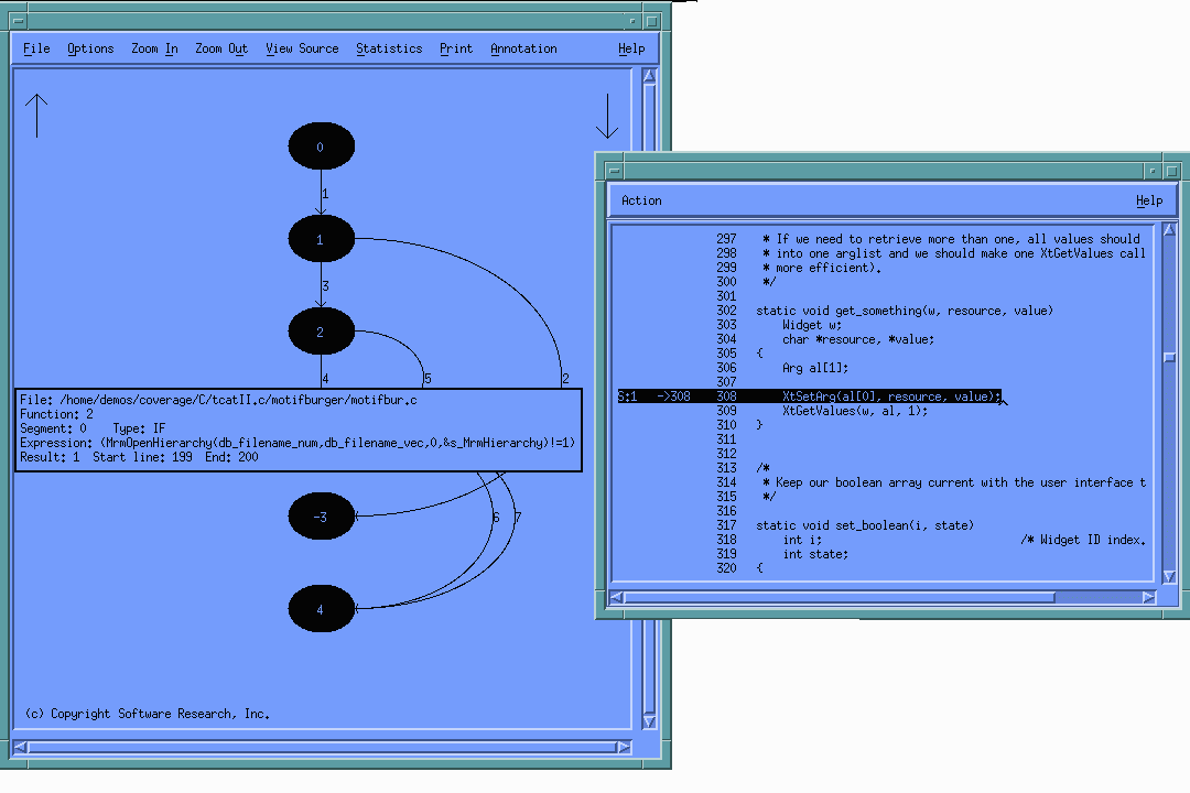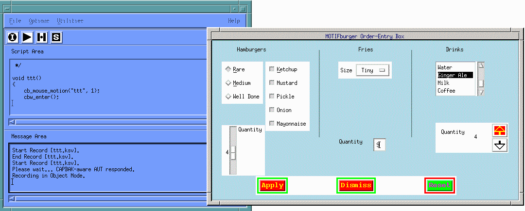 This page shows you a sampling of screens taken from a TestWorks Application Note TestWorking Motifburger.