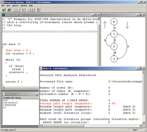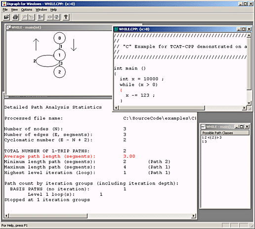TCAT's apg capability can automatically enumerate and analyze the paths within a program based on its logic structure. These results can be used to evaluate program complexity. A few theories have shown that the number of errors in a program has a high correlation with the total number of path classes. Additionally, the amount of errors in a program has a low correlation with the cyclomatic complexity.